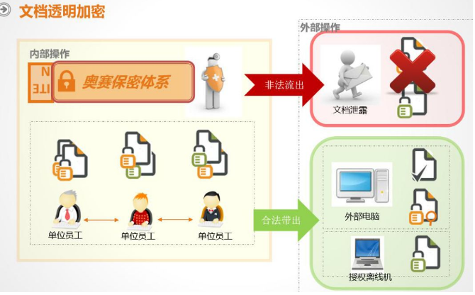 奧賽云盾采用先進(jìn)的文件內(nèi)核加密技術(shù),在無需人工干預(yù)、不影響員工辦公的前提下對(duì)數(shù)據(jù)進(jìn)行全程智能加密,在內(nèi)部環(huán)境可正常使用,脫離內(nèi)部授權(quán)環(huán)境則無法打開。根據(jù)實(shí)際業(yè)務(wù)需求可使用打開加密、修改加密、手動(dòng)加密、智能加密等靈活多樣的加密策略。