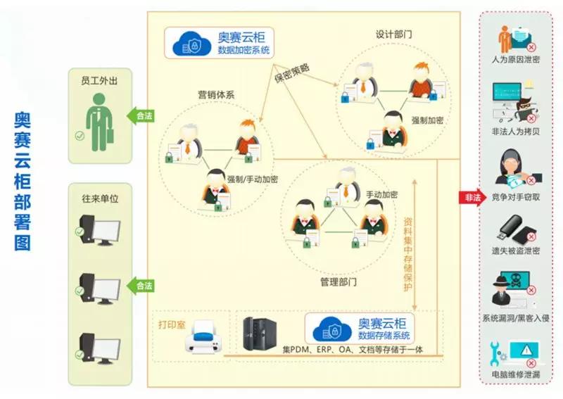 奧賽云柜采用先進的透明加密模式,正常辦公中,獲得崗位授權(quán)的員工可正常使用,與平時辦公系統(tǒng)無任何差異,無授權(quán)的員工電腦無法打開,脫離授權(quán)環(huán)境(外發(fā)或拷貝)同樣無法打開。企業(yè)數(shù)據(jù)安全保護,員工授權(quán)正常使用。