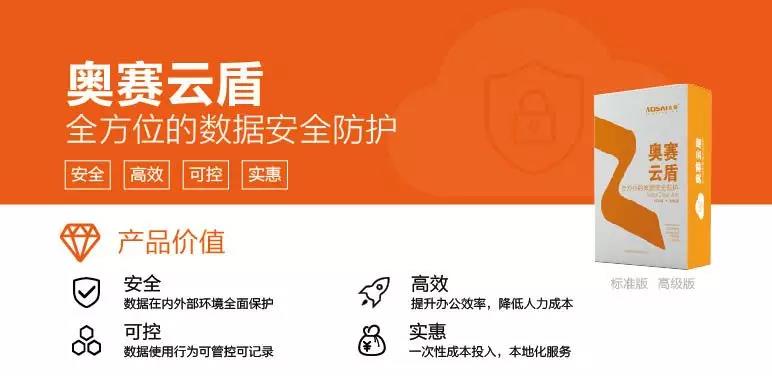 ▲ 奧賽云盾全方位實(shí)現(xiàn)內(nèi)部的流轉(zhuǎn)、存儲(chǔ)、使用、外發(fā)等過程中的安全。