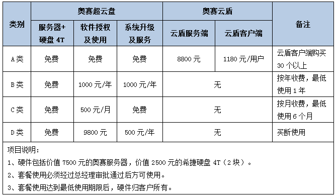 奧賽產(chǎn)品四款套餐,采取硬件免費(fèi),軟件服務(wù)收費(fèi)形式,大大降低使用門檻。