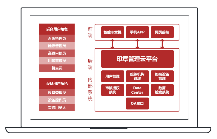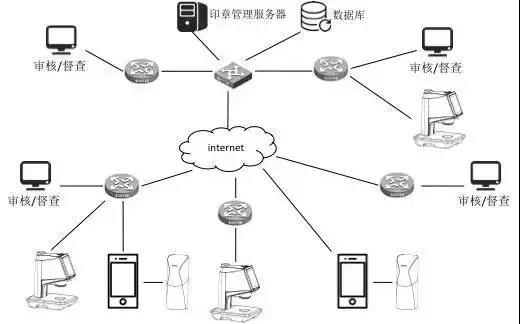 本系統(tǒng)為面向各種使用印章的組織,實(shí)現(xiàn)在實(shí)際業(yè)務(wù)流程對(duì)實(shí)體印章使用過(guò)程進(jìn)行管理。通過(guò)整合對(duì)實(shí)體印章進(jìn)行安全管理的專(zhuān)用硬件產(chǎn)品平臺(tái),利用基于網(wǎng)絡(luò)和專(zhuān)有云服務(wù)的數(shù)據(jù)采集和存儲(chǔ)、指令獲取和發(fā)放的管理平臺(tái),對(duì)用印過(guò)程進(jìn)行全程數(shù)據(jù)采集、匯總和記錄;同時(shí)基于用戶的用印管理制度,利用信息化的管理手段,實(shí)現(xiàn)基于網(wǎng)絡(luò)和安全硬件產(chǎn)品的自動(dòng)化用印授權(quán)管理。