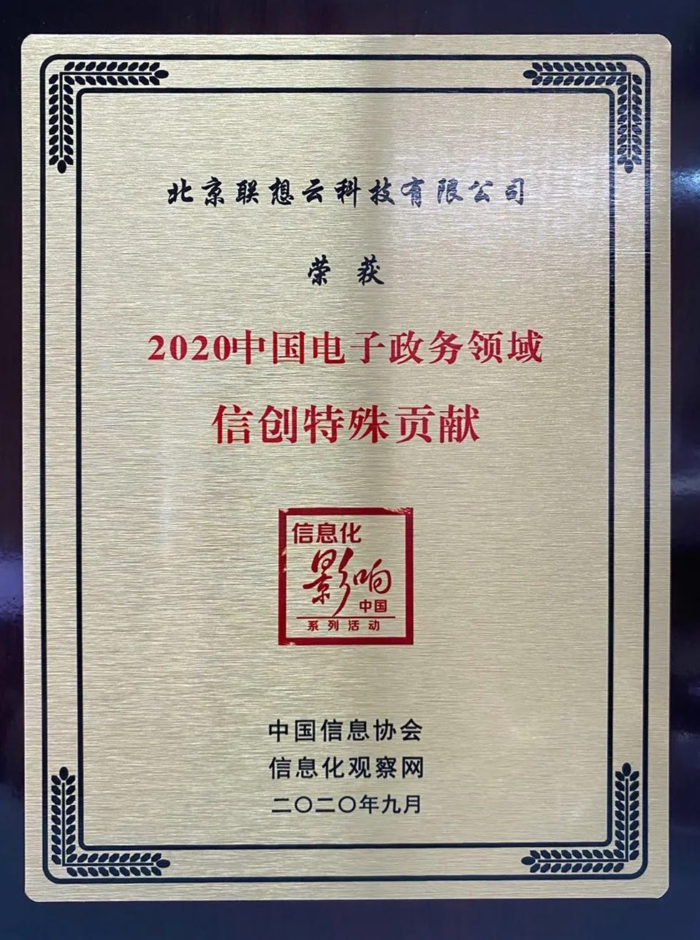 聯(lián)想云榮獲2020中國(guó)電子政務(wù)領(lǐng)域信創(chuàng)特殊貢獻(xiàn)