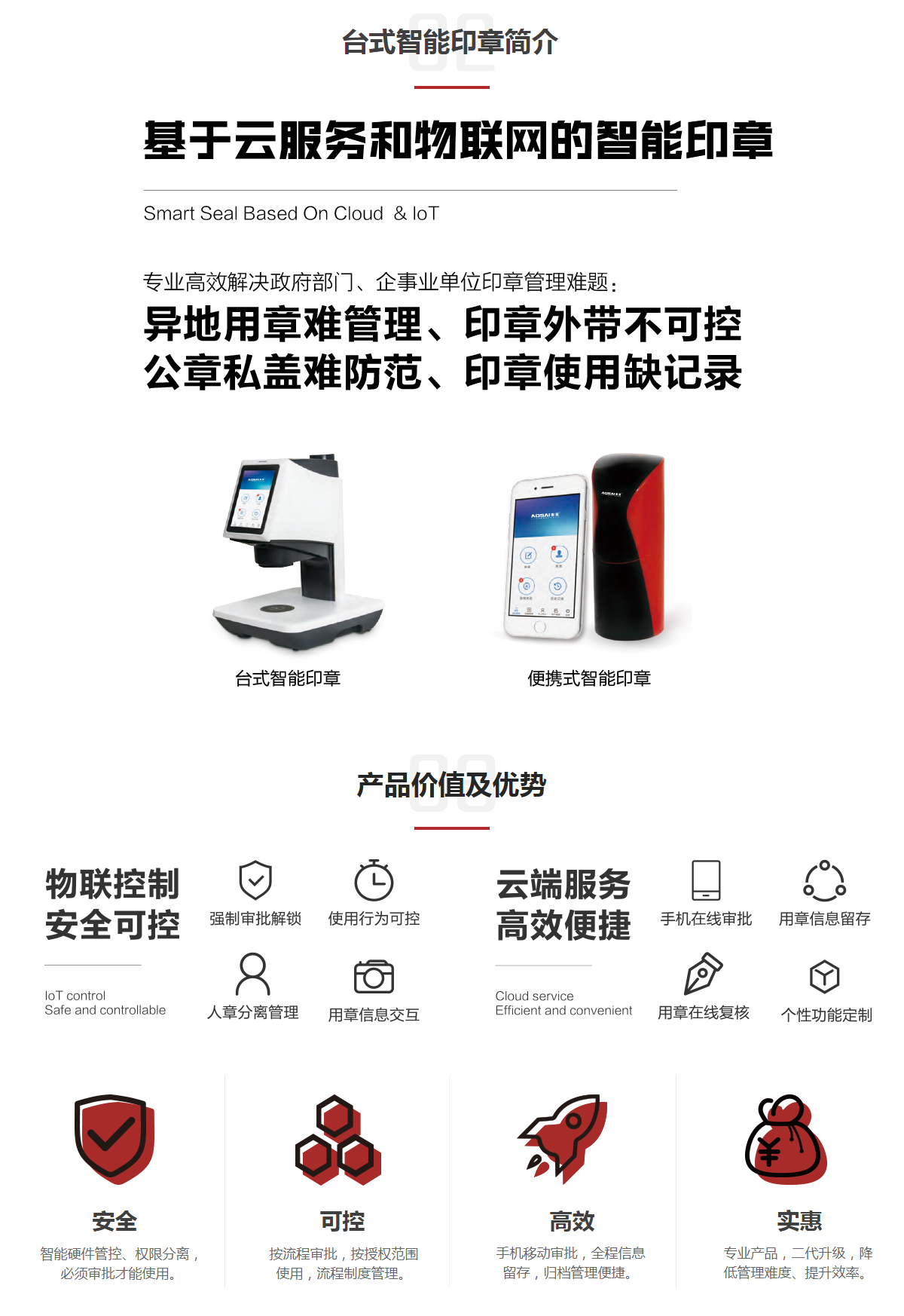 智能印章,是基于智能硬件+云端服務(wù)的智能印章,通過(guò)智能硬件管控蓋章動(dòng)作,通過(guò)云端