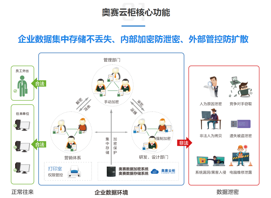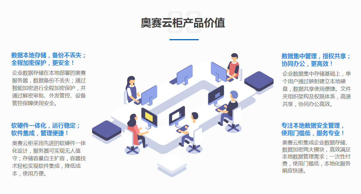 奧賽云柜,是一款實現(xiàn)數(shù)據(jù)集中存儲及加密保護的產(chǎn)品,軟硬件一體化方案,更安全、高效