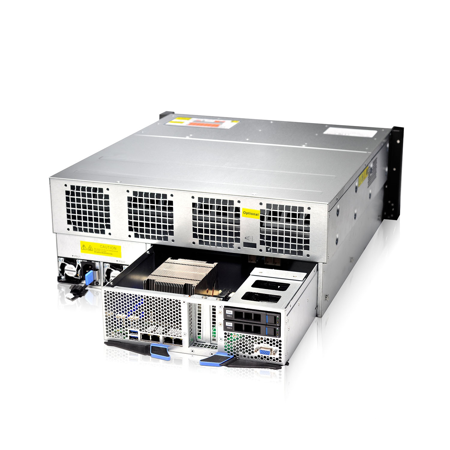 控制器模組支持2個(gè)PCI-E x8擴(kuò)展槽位和2個(gè)2.5“SATA熱插拔硬盤位(4U24盤位);擴(kuò)展卡位置可支持萬兆網(wǎng)卡、小功耗GPU等各種擴(kuò)展設(shè)備。
